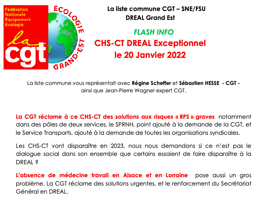 La CGT réclame lors de ce CHSCT des solutions aux risques « RPS » graves notamment dans des pôles de deux services.