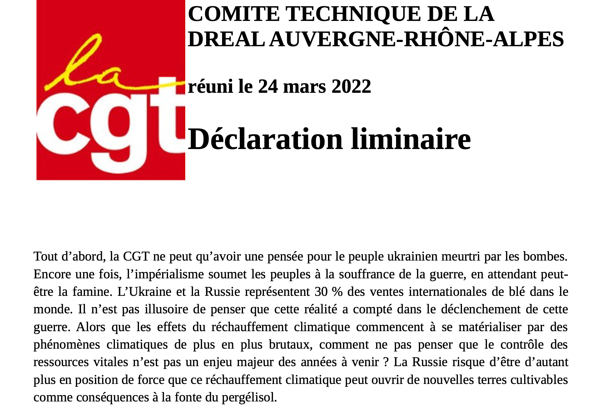 Lire la déclaration CGT :