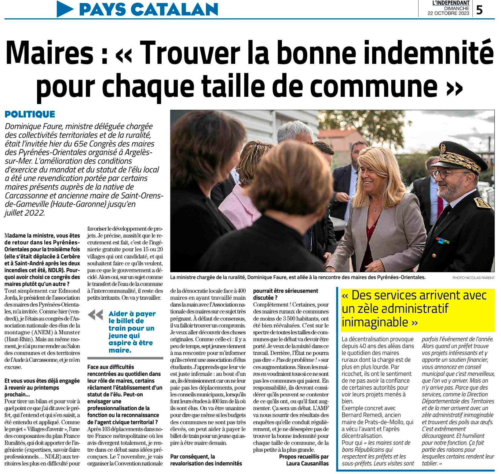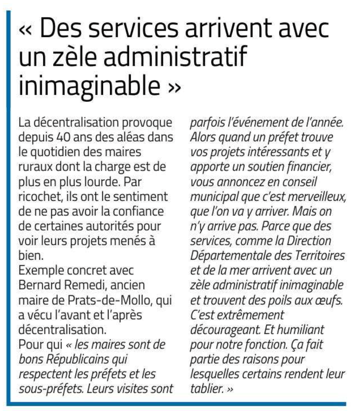 Courrier au Préfet - Article de presse