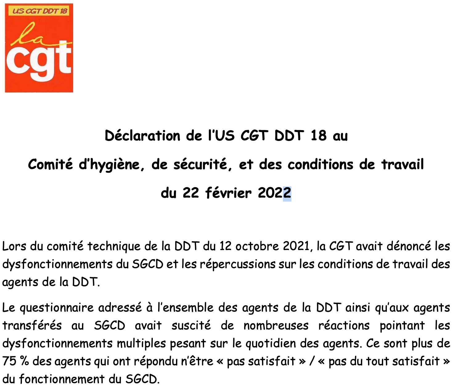 Déclaration CGT au CHSCT