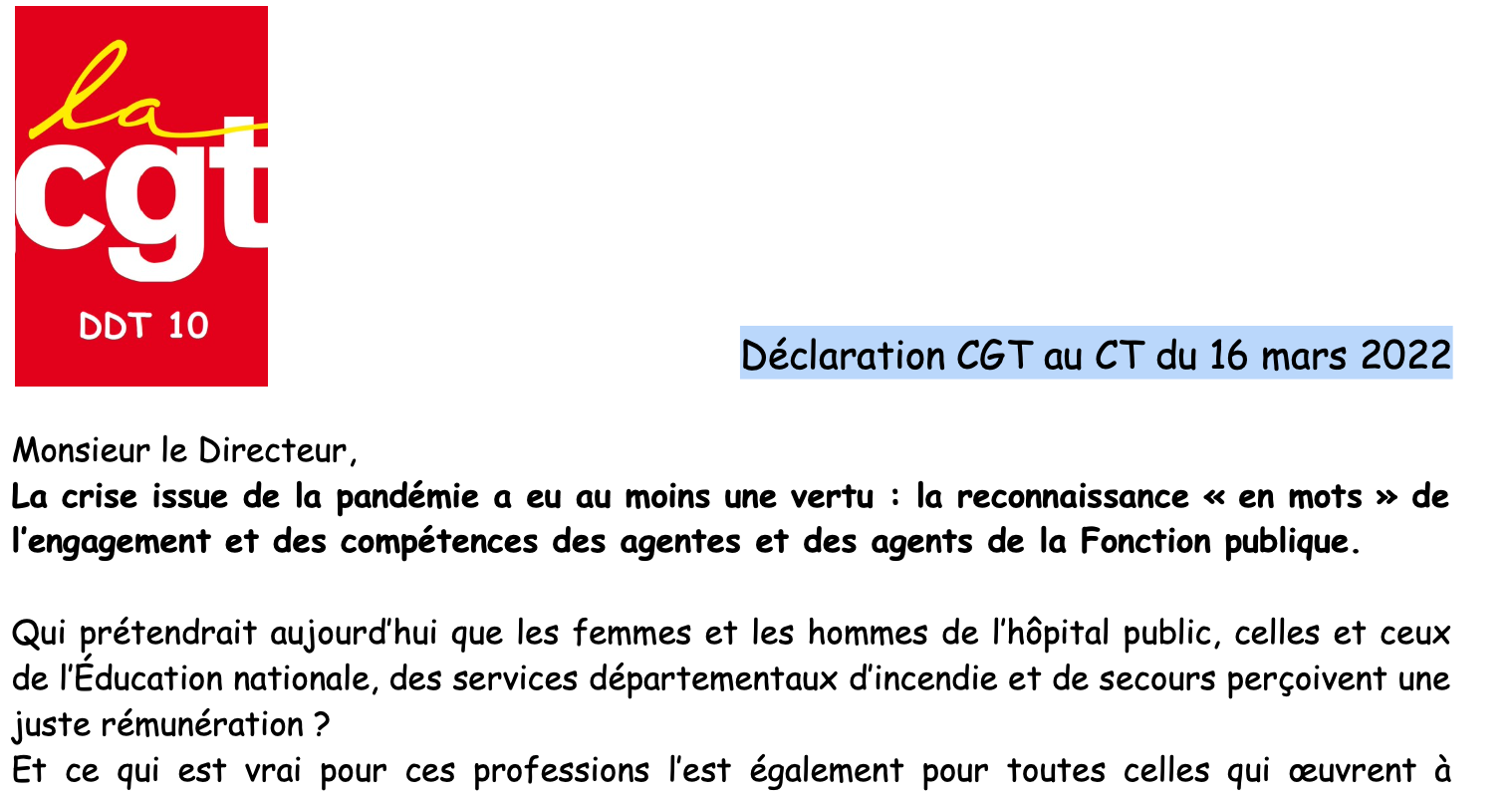 Déclaration CGT au CT du 16 mars 2022