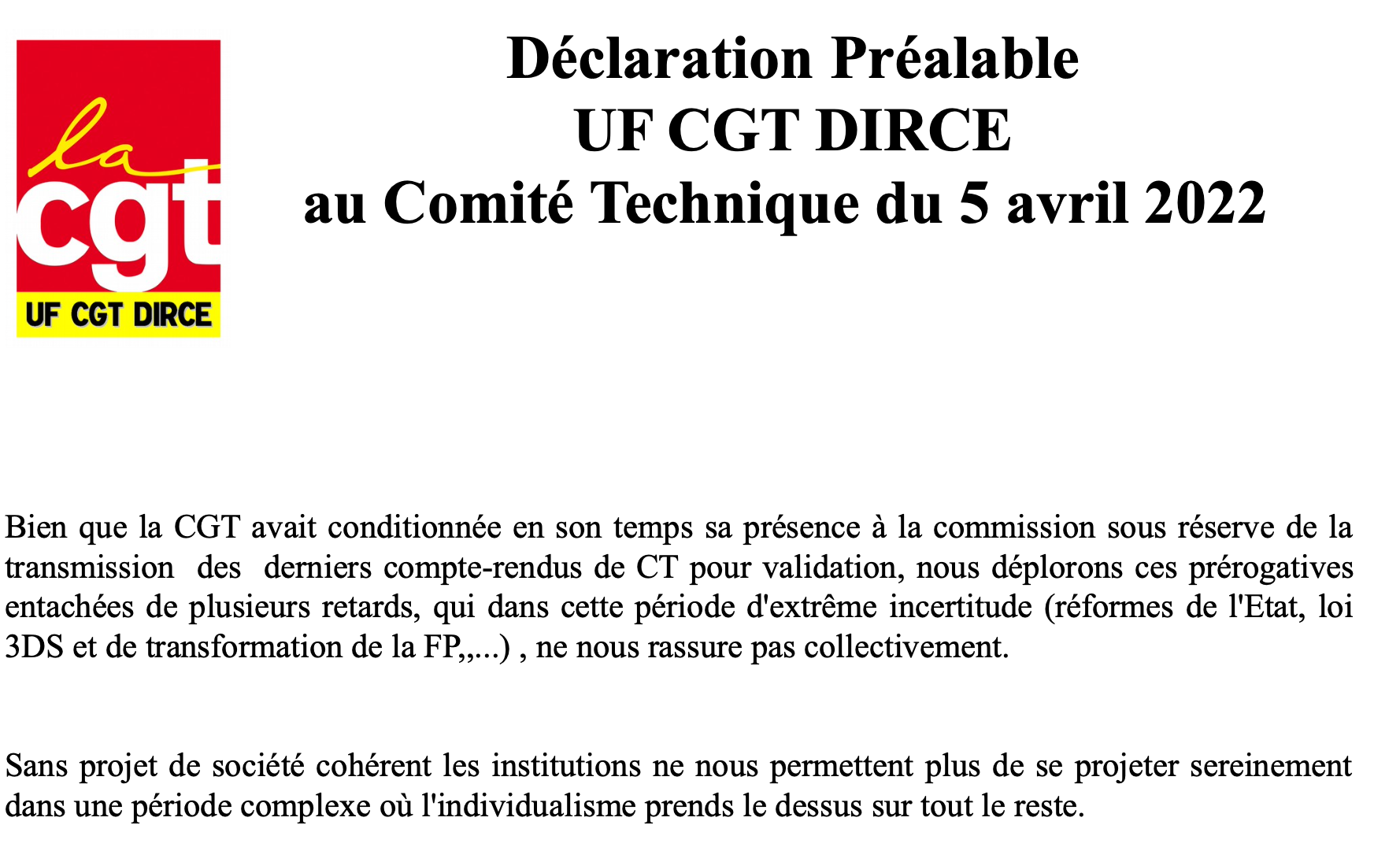 Vous trouverez en suivant le lien suivant le compte-rendu CGT du CT.